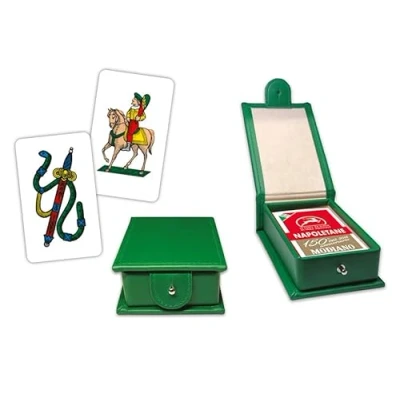AmazonGreen faux leather pencil case Folding lid joined to the body of the pencil case Contains a deck of 150th anniversary Neapolitan cards 410g Duplex Cardstock Cards, Manufacturer: Modiano