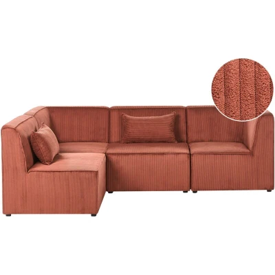 Modular Left Corner 4 Seater Sofa Dark Red Corduroy Sectional Modern Design LEMVIG