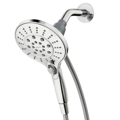 VERSATILE DESIGN: Chrome finish is highly reflective for a mirror-like look that works with any decorating style EASY INSTALLATION: The Engage shower heads with handheld spray combo are installed directly onto the existing shower arm CUSTOMIZE YOUR SHOWER: Multiple distinct shower settings give flexibility and variety with settings including massage, relaxing massage, wide-coverage, rinse, downpour, and intensify MAGNETIC BASE: The magnetic docking system allows you to easily detach and reattach your handheld showerhead FLEXIBLE: The shower head with handheld combo features a 60" kink-free metal hose that extends reach and flexibility BUILT TO LAST: Backed by Moen's Limited Lifetime Warranty, Weight: 1.87 pounds, Manufacturer: Moen Incorporated
