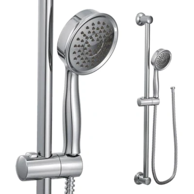 One-function 4-1/4" diameter spray head handshower One-function full spray 4-1/4" diameter spray head handshower 24" slide bar with push button height selection; 59" hose length Vacuum breaker Included slide bar makes it easy to adjust the hand held shower height, Weight: 5.28 pounds, Manufacturer: Moen