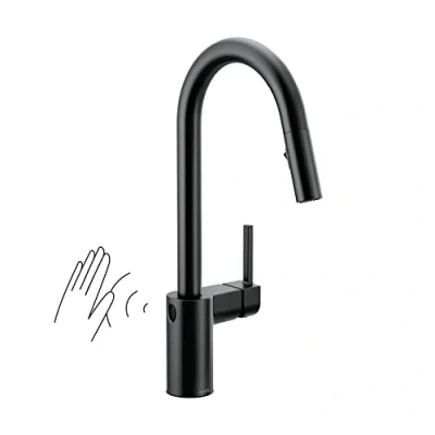 Moen 7565EVBLS Align U by Smart Pulldown Kitchen Faucet with Voice Control and MotionSense, Black Stainless
