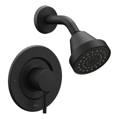 Matte Black finish is the perfect complement to modern spaces When paired with Moen Posi-Temp shower valve, this shower system ensures the regulation of your water temperature and pressure. Valve sold separately Moenflo xl single function provides wider water coverage than standard shower heads and features 2.5 gpm flow rate Shower faucet handle includes red and blue markings Backed by Moen limited lifetime warranty, Manufacturer: Moen