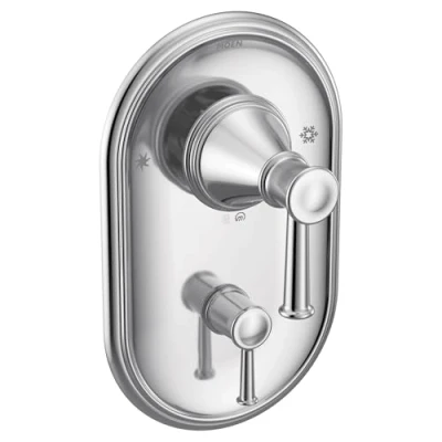 VERSATILE DESIGN: Chrome finish is highly reflective for a mirror-like look that works with any decorating style VALVE REQUIRED: This trim kit requires valve # 2521, 2551, 2571, or 2581 to complete installation MULTIPLE FUNCTIONS: Built-in transfer valve directs water flow to multiple showering function PRESSURE BALANCING: Posi-Temp valve (sold separately) helps maintain water pressure and temperature even when other water sources in the house are in use BUILT TO LAST: Backed by Moen’s Limited Lifetime, Weight: 2.14 Pounds, Manufacturer: Moen