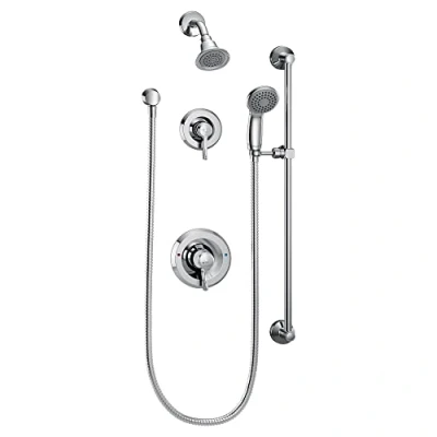 Lever design for ease of use Vandal resistant Positemp pressure-balancing valve (sold separately) maintains water pressure and controls temperature handheld shower includes integral double check valves for backflow protection showerhead spray face features easy–clean, rubberized spray nodules, Weight: 7.59 Pounds, Manufacturer: Moen Incorporated