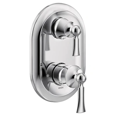VERSATILE DESIGN: Chrome finish is highly reflective for a mirror-like look that works with any decorating style VALVE REQUIRED: This trim kit requires M-CORE Mixing Valve with Integrated Transfer Valve U232 or U362, with preferred installation option, to complete installation FOR USE WITH TWO OR THREE SHOWERING DEVICES: Integrated M-CORE Transfer Valves can control 2 or 3 showering devices, a simple transfer cartridge modification changes the valve’s flow from two outlets to three outlets IMPORTANT: When using 3 Showering Devices, transfer valve cartridge must be modified. Simple Cartridge Modification changes the valves flow from two outlets to three outlets. See Transfer Valve Instructions for additional information. IMPORTANT: When using 2 Showering Devices, designated outlet 3 must be CAPPED. Caps sold separately..PRESSURE-BALANCING CAPABILITY: M-CORE valves, with 3-Series trim, have pressure-balancing capabilities designed to control temperature fluctuations in the event of water pressure changes in the home.VOLUME CONTROL: Features volume control, allowing you to adjust the flow of water for greater functionality., Weight: 2.0 Pounds, Manufacturer: Moen Incorporated
