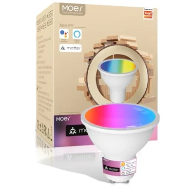 MOES Smart Bulb GU10 PAR16 Light Bulbs, Matter Over WiFi, 5W 400lm 2700K 6500K RGB Dimmable 16 Million Colour Warm White Changing, Compatible with Alexa/Google Home/Apple Home 2.4 GHz WLAN