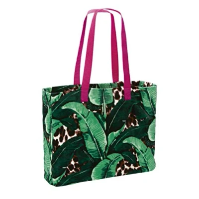 Stylish beach bag made of soft cotton velour With high-quality digital print "Banana leaf" - the fabric remains soft to the touch and has a velvety appearance With inner lining and carrying strap in colourful pink Available in the size 45 x 37 cm, washable at 60° C and suitable for tumble drying Certified according to Oeko-Tex Standard 100 (tested for harmful substances), ideally suited for allergy sufferers and sensitive baby skin (product class 1) Fabric type: 100% Cotton