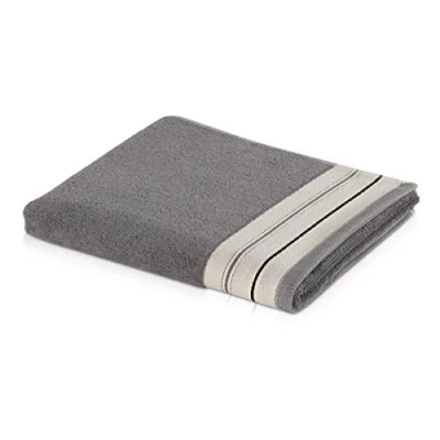 Möve Bohème Double face with striped border Towel 50 x 100 cm, Made in Germany, 85% cotton 15% linen, Grey/Nature