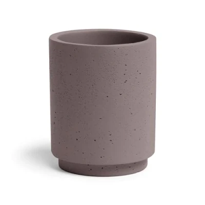 Attractive accessory series made of polished cement Rounded items with distinctive black details Provides a modern look in the bathroom