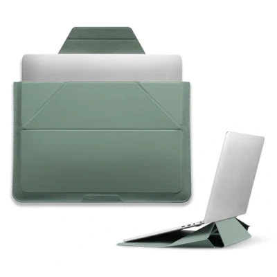 MOFT Laptop Sleeve Case & Stand for 15 16 inch Laptop, Vegan Leather Bag with Expandable Storage, 2 Adjustable Angles, Compatible MacBook Air/Pro inch, Seafoam