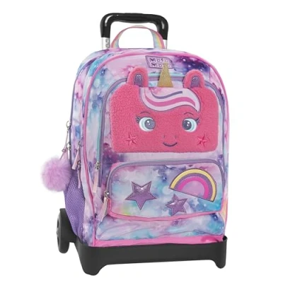 Mofu Trolley School Backpack, Adjustable Handle, Detachable Trolley, Padded and Shoulder Straps, 2 Main Compartments, Front Pocket, Zip Closures, 34 x 52 Hx22 cm, Lilac