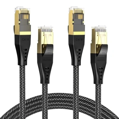 [40Gbps 2000Mhz High Speed] MOGOOD Cat 8 Ethernet cable supports up to 2000Mhz bandwidth and 40Gbps transmission speed, providing stable transmission performance for server applications, HD video streaming, gaming, cloud storage, etc. With MOGOOD Cat8 ultra-high-speed patch cables, the waiting time is significantly reduced. [Application]MOGOOD Cat 8 cable saves space by eliminating tangled wires and allows for cleaner, safer installations anywhere through doorways and carpets. It withstands more than 12,000 bends, up to 30kg of pulling force and all kinds of weather extremes to ensure a long product life. Compared to other Ethernet cables, Lan cables provide clear speeds and stable connections for watching videos, playing games and downloading files. [Special Design]The Cat 8 cable consists of 4 sheathed twisted pair (S/FTP) copper wires with PVC jackets and gold-plated connector housings with 6.5 O.D. and gold-plated moulded PINs, which ensures a higher level of quality and shielding to minimise internal or external interference. [Wide Compatibility]It is suitable for all devices with RJ45 connectors,such as Playstation, Xbox series, Modems, Adapters, Switches, Smart TVs, Senor hubs, WIFI routers, PCs, Network prints, Media Players, Blue players and more. [PoE Support]The MOGOOD Cat 8 Ethernet cables all support PoE power supply. When installing PoE cameras, no additional power supply is required, which is very convenient and safe.