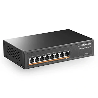 MokerLink 8 Port Gigabit PoE Switch, PoE+ Ports 1000Mbps, 802.3af/at 120W, Unmanaged Plug and Play, Sturdy Metal Fanless