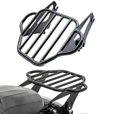 Fitment - Replacement for H-D P/N 50300058A. This aftermarket premium adjustable detachable luggage rack fits Harley Touring Models 2009 -2022 Road King, Road Glide, Street Glide, Electra Glide Easy to Use - This two-up luggage rack could be easily installed or removed in seconds, requiring a separate purchase of a 4-Point Docking System Kit to mount. Please refer to our instruction pictures to help install this fender shelf Quality Speaks - Made of premium steel which has high tensile strength, the solid structure makes it durable for long-lasting performance, not easy to break. It could hold weight up to 30 10lbs. Slotted side plates provide options for securing soft or rigid carrying bags Stylish Crafts - Gloss black finished promises no scratch on the surface, in Brand-new condition. Harp-shaped rack constructed of large diameter steel rod, welded and perfectly polished for an elegant look. Large rack with side extensions offers a versatile flat load surface Customer Support - Comes with 1 luggage rack as picture shown, instructions and docking kit are not included. Back-up with 24/7 customer service, if any questions you have, please message us to get a satisfying solution.