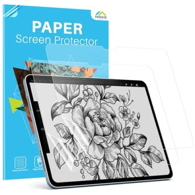 MoKo 2 Pack Paper Screen Protector for NEW iPad Air 11 Inch M2 2024 (Air 6th Generation), Write and Draw Like on Anti Glare Matte PET Film, Scratch, Compatible with Apple Pencil