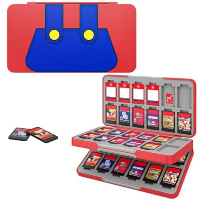 MoKo 48 Game Card case Compatible with Nintendo Switch OLED 2021/Switch/Switch Lite, Games Holder for & SD Card, Slim Portable Storage Box, RedBDK