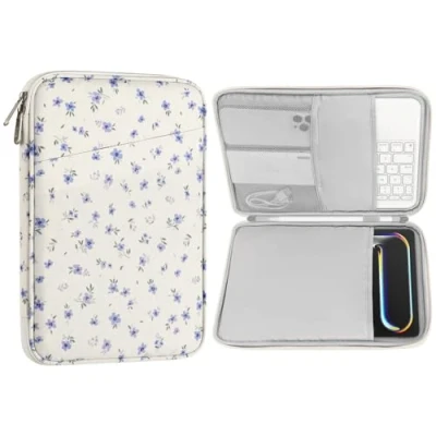 MoKo 9 11 Inch Tablet Sleeve Case, Fits 11inch iPad Air M3, A16 2025, Pro M4, i Pad 10/9/8/7th, Galaxy Tab S9/S8/A8/A7, Protective Bag Carrying Case with Pocket, Mint Blue Floral