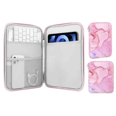 COMPATIBLE DEVICE - The sleeve bag is ideal for most 9-11 inch tablets. Fits with New 11-inch iPad Pro M4/iPad Air M2 2024, iPad Air 5/4th 10.9" 2022/2020, iPad Pro 11 M2/M1 2022/2021, iPad 10th 10.9 2022, iPad 9th Gen 10.2" 2021, iPad 8th/7th Gen 10.2 2020/2019, iPad Air (3rd Gen) 10.5 Inch 2019, iPad Pro 10.5 inch 2017, iPad 9.7 6th/5th Gen (2018/2017), iPad 1/2/3/4, iPad Air/Air 2, Tab S6 Lite 10.4, Galaxy Tab S8/S9 11", Tab A8 10.5, Surface Go 2/3 10.5, Surface Go 10 Inch 2018 Release. HIGH-QUALITY - The sleeve case is made of premium polyester external, soft inner lining and thick sponge padding, which is not only splash-proof but also can protect your tablet from scratches and shocks. ENOUGH CAPACITY - There are some pockets to organize your items. A main pocket for placing your 9-11 inch tablet. And the front pocket with enough space for storing other accessories like your cellphone, chargers, USB cables, computer mouse, power bank, earphone, bank cards and other personal subjects. ZIPPER CLOSURE - Durable and smooth zipper closure make an easy access to your device and accessories. PORTABLE - With the product size of 12.2" x 9.45" x 0.98" (31 x 24 x 2.5 cm), it is convenient to slide into your bag while going outside. Please kindly note that measure the dimension of your device before purchasing.