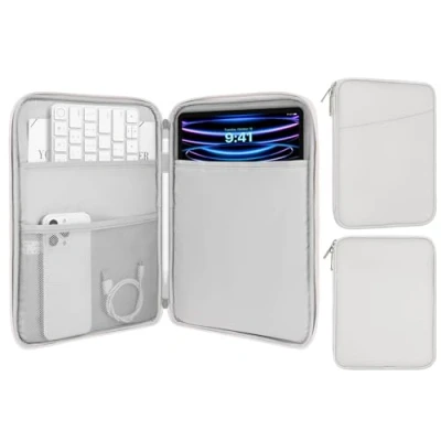 MoKo 9 11 inch Tablet Sleeve Case,Fits New iPad Air/Pro 2024, Air 5/4th 10.9,iPad 10th Gen 9/8/7th 10.2,Galaxy Tab S8/S9 11,Protective Bag Carrying Case with Pocket,Gray + White