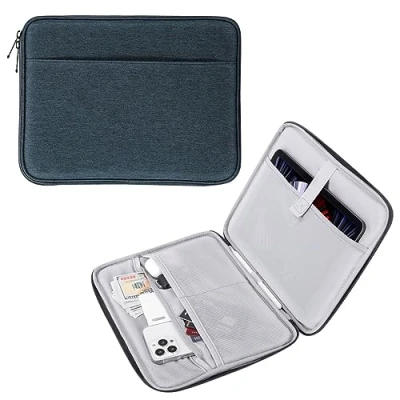 🔥[COMPATIBLE DEVICE] –The tablet sleeve is ideal for most 9-11 inch tablets, fits New 11-inch iPad Pro M4 2024, New 11-inch iPad Air M2 2024, iPad Air 5/4th 10.9 inch, iPad Pro 11 M2/M1 2022/2021, iPad 10th 10.9 2022, iPad 9/8/7th Gen 10.2" 2021/2020/2019, iPad Air (3rd Gen) 10.5 Inch 2019, iPad Pro 10.5 inch 2017, iPad 9.7 6th/5th Gen (2018/2017), iPad 1/2/3/4, iPad Air/Air 2, Galaxy Tab S8/S9 11", Tab A8 10.5", Surface Go 2/3 10.5", Surface Go 10 Inch 2018 Release. 🔥[HIGH-END QUALITY] – Made of premium splash-proof polyester exterior, which effectively prevents dust and keeps your device from spills and fluids. With soft lining compartments would fully wrap your device against shocks and scratches. 🔥[MULTI-COMPARTMENT STORAGE] –Inside the ipad sleeve has two compartments, one for tablet and the other is used to store smaller items like your pens, cables, power outlet, mobile phones or even your iPad depending on what you need. 🔥[HOOK AND LOOP CLOSURE] – The storage compartment for tablet is designed with hook and loop for easy access as well as making your equipment safer and preventing accidental slipping. 🔥[PORTABLE] –External dimension is 12.2*9.45*0.79inch(31*24*2cm). Slim, portable and lightweight to take alone, or slide it into your briefcase, backpack or any other bag, perfect for business or travel.