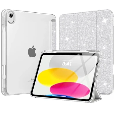 MoKo for iPad 11 inch (A16) 11th Generation Case 2025, 10th 2022 with Pencil Holder, Slim Lightweight Trifold iPad11 Cover Rugged PC Translucent Back Shell, Shiny Silver