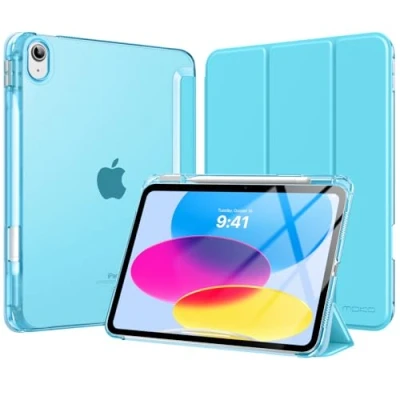 MoKo for iPad (A16) 11th Generation Case 11 Inch 2025, 10th 10.9 2022 with Pencil Holder, Slim Light Trifold Protective Cover Hard PC Translucent Back Shell, Cyan