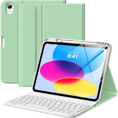 MoKo for iPad (A16) 11th Generation Case with Keyboard 11 inch 2025, 10th 10.9 Pencil Holder, Multi Angle Detachable Bluetooth Keyboard, Green