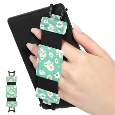 MoKo Soft Hand Strap for 6 8"Kindle eReaders Fire Tablet Kindle/Kobo/Voyaga/Lenovo/Sony Kindle E Book Tablet,Black High Elasticity Versatile Lightweight Finger Grip Holder,Light Green Daisy