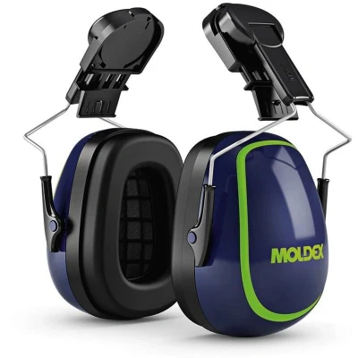 General description The Moldex MX-7 Helmet Mounted Earmuffs are designed for safety helmets featuring a 30mm Euro slot. These earmuffs provide effective noise cancellation with a single number rating (SNR) of 31 dB, making them ideal for use in noisy environments. They are equipped with extra-large viscoelastic foam cushions that enhance comfort and improve pressure distribution during extended wear. Technical specifications Color options: Blue or Green Material: Viscoelastic foam cushions Protection level: SNR 31 dB Compatibility and accessories Compatible with helmets featuring a 30mm slot Includes an adapter for easy attachment to compatible helmets Installation Attach the ear cup shells to the helmet using the provided adapter Ensure the shells are securely clipped onto the helmet's slot for proper protection Usage Wear the ear cushions over the ears for noise reduction in noisy environments Adjust the fit for comfort and optimal sound attenuation Other information Tested for