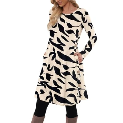 MOLERANI Jumper Dress for Women Long Sleeve Ladies Button TunicDress with Pockets Apricot Black Leaf Size 24 XXL