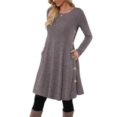 Stylish Design:Classic Crew neck / Round neck Jumper dress long sleeve ladies dress, tunic dress. Comfy Pockets keep warm&hold something, Side Buttons((The buttons don't open. They are for decoration, make the dress more lovely!) - A simple dress is a casual fashion, never out of fashion. Occasions: Suitable for Casual Daily/ Travel/ Home/ Vacation/ Shopping/ Street/ Party/ Outdoor/ Club to Wear.You must have in your Wardrobe,Christmas patterned dresses can set off the unique you for the holidays. Match: It's a perfect dress that can be worn alone, casual and cute; it can also be worn with various types of coats; the lower body can be paired with leggings,jeans, sports pants, high heels, boots, or ports shoes,et Material: Polyester+Spandex. It's Stretchable, Soft and Lightweight,Provide You a Pleasing Wearing Experience. WASHING NOTE: MOLERANI dresses need to be hand washed, do not iron at high temperature and bleach with bleach. Hand wash and hang to dry if possible!