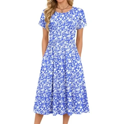 Fabric: This short sleeve A Line dresses features a comfortable and soft polyester-spandex blend fabric that is lightweight, breathable and stretchy, seamlessly combining comfort with style. ladies dresses is an ideal choice for summer wear Design: Petal sleeves, round neckline, practical side pockets, elasticated waistband, knee-length, A-line silhouette, flowing hem. A versatile staple among ladies summer dress Styling: This Ladies Casual Round Neck Beach Dress pairs beautifully with sandals, high heels or ankle boots alongside exquisite accessories to enhance its fashion-forward appeal. UK beach dresses is an essential staple for every wardrobe Occasions: This womens summer dress is suitable for everyday wear, beach holidays, parties, wedding celebrations, leisure breaks, work, campus events, shopping trips and more, making it the perfect choice for any occasion Size selection: Standard sizes S/M/L/XL/2XL are available. Please ensure you verify the measurements before placing your order