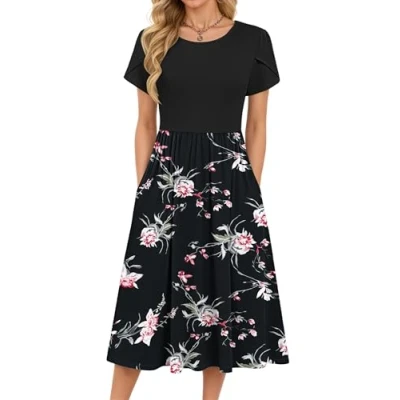 Fabric: This short sleeve A Line dresses features a comfortable and soft polyester-spandex blend fabric that is lightweight, breathable and stretchy, seamlessly combining comfort with style. ladies dresses is an ideal choice for summer wear Design: Petal sleeves, round neckline, practical side pockets, elasticated waistband, knee-length, A-line silhouette, flowing hem. A versatile staple among ladies summer dress Styling: This Ladies Casual Round Neck Beach Dress pairs beautifully with sandals, high heels or ankle boots alongside exquisite accessories to enhance its fashion-forward appeal. UK beach dresses is an essential staple for every wardrobe Occasions: This womens summer dress is suitable for everyday wear, beach holidays, parties, wedding celebrations, leisure breaks, work, campus events, shopping trips and more, making it the perfect choice for any occasion Size selection: Standard sizes S/M/L/XL/2XL are available. Please ensure you verify the measurements before placing your order