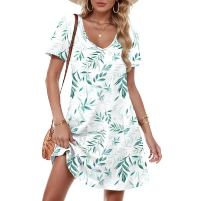 MATERIAL:Women's summer dress feature a skin-friendly, soft, and elastic fabric that is breathable, does not shrink, providing you with a delightful wearing experience. FEATURES:1.Loose Fit: Women dresses comfortable,suits different body types. 2.Two Pockets: Handy and trendy for a practical. 3.V-Neck:The v neck will highlights the neckline and adds sparkle to your look. 4.Short Sleeve:Summer dresses for women versatile and practical for any season MATCHING:Womens dresses easily take your look from the beach to brunch! Summer dress knee length dress is easy to style with leggings,boots and sunglasses to achieve a classic look. Occasions:This ladies dresses suit for Daily wear,Beach,Party,Wedding,Vacation,Home,Office,School,Shopping,Travel. DESIGN: Short Sleeve Dress, T Shirts Dress, Sundress, Summer Dress, V Neck Dress, Vocation Dress, Beach Dress, Dresses for Women UK, Casual Dress, Summer Dresses for Women, Midi Dresses