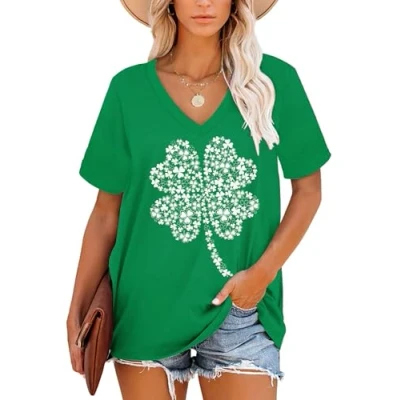 MOLERANI T Shirts for Women Short Sleeve V Neck Striped Summer Tops Casual Loose Tee Four Leaf Clover Size 22 24