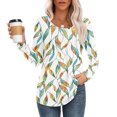 Superior Fabric Blend: This long sleeve t shirt for women is crafted from a premium blend of polyester and spandex, ensuring durability, comfort, and a slight stretch. The polyester provides excellent shape retention and resistance to wrinkles, while the spandex offers a flexible fit that moves with your body. This combination makes it one of the best womens long sleeve tops for everyday wear, perfect for those seeking both style and functionality Charming Pleated Detail: Stand out from the crowd with this unique long sleeve t shirts women featuring an eye-catching pleated design on the chest. The delicate pleats add a touch of elegance and femininity to the classic round neck, transforming this simple ladies t shirt into a stylish statement piece Easy to match:This oversized t shirt for women is a versatile staple in your wardrobe. As a womens longline t shirt, it pairs perfectly with leggings or skinny jeans for a casual, laid-back look. You can also tuck it into a high-waisted skirt or shorts to create a more polished outfit. Layer it under a denim jacket, blazer, or coat during colder months, or accessorize it with necklaces, scarves, and hats to express your personal style Occasion: This ladies long sleeve tops Suitable for daily, casual, business, work, dating, travel, holiday, party, outdoor activities, shopping Garment Care: To keep this womens long sleeve t shirts in top condition, simply machine wash it in cold water on a gentle cycle Or hand wash. Avoid using bleach to preserve the fabric's color and elasticity. Tumble dry on low heat or line dry to maintain its shape