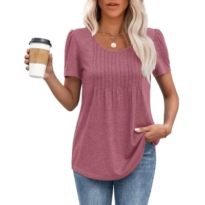 Soft Material: This Soft Short Sleeve is made of polyester and spandex, the fabric is skin-friendly and comfortable to wear,Stretchy and suitable for most women's body shapes Features: This ladies tops is loose and comfortable, with Crew Neck and Front Pleated design helps to slim the chest silhouette, suitable for any body type, it is a good choice for you Match: This women's fashion tops is classic and versatile, suitable for pairing with all kinds of jeans, leggings or skirts, the curved hemline adds a sense of fashion, this t-shirt is the best choice for summer Occasion: This oversize t shirts for women Suitable for daily, casual, business, work, dating, travel, holiday, party, outdoor activities, shopping Garment Care: Hand wash or machine wash in cold or lukewarm water below 30°, tumble dry low, or hang to dry is recommended