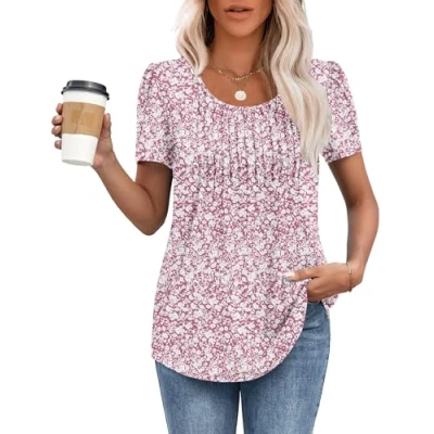 Soft Material: This Soft Short Sleeve is made of polyester and spandex, the fabric is skin-friendly and comfortable to wear,Stretchy and suitable for most women's body shapes Features: This ladies tops is loose and comfortable, with Crew Neck and Front Pleated design helps to slim the chest silhouette, suitable for any body type, it is a good choice for you Match: This women's fashion tops is classic and versatile, suitable for pairing with all kinds of jeans, leggings or skirts, the curved hemline adds a sense of fashion, this t-shirt is the best choice for summer Occasion: This oversize t shirts for women Suitable for daily, casual, business, work, dating, travel, holiday, party, outdoor activities, shopping Garment Care: Hand wash or machine wash in cold or lukewarm water below 30°, tumble dry low, or hang to dry is recommended