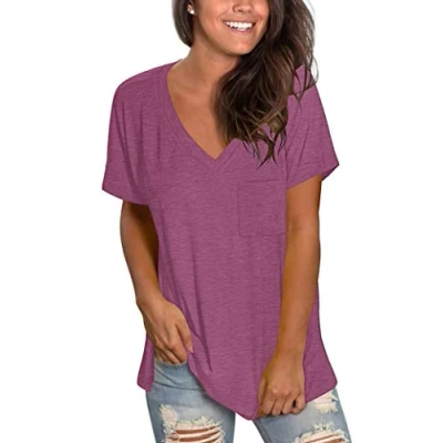 Soft Material: This cute shirts is made of quality 65% Polyester 30%Rayon and 5% Spandex, It is a lightweight, loose,stretchy,soft and comfortable fabric, It fits the body of most Lady’s shape Features: Short sleeve, V neck, solid color, loose casual style, The side pocket design adds special features to this womens blouse.This versatile V neck t shirt is for effortless styling your way!Is design for any bodyline,will be a good choice for you Match: This soft and comfortable short sleeve T-shirt is the best choice for this summer!Featuring a trendy color!It's perfect with all kinds of jeans, leggings or skirts,looks stylish and beautiful.We believe good clothing has the power to inspire confidence and beauty. A Must-Have Womens Tops in Your Wardrobe Occasion: Casual, everyday, Running, outdoor, travel, shopping, vacation, at party, dating, Work, or at home.The White Color and other Light Colors are a little bit see through, please use a nude or lighter color underwear,and don't have to wear a slip Garment Care: Recommend Hand-washing or Machine-washing with Cold Water or Warm Water Below 30°