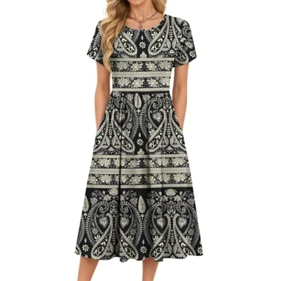Fabric: This short sleeve A Line dresses features a comfortable and soft polyester-spandex blend fabric that is lightweight, breathable and stretchy, seamlessly combining comfort with style. ladies dresses is an ideal choice for summer wear Design: Petal sleeves, round neckline, practical side pockets, elasticated waistband, knee-length, A-line silhouette, flowing hem. A versatile staple among ladies summer dress Styling: This Ladies Casual Round Neck Beach Dress pairs beautifully with sandals, high heels or ankle boots alongside exquisite accessories to enhance its fashion-forward appeal. UK beach dresses is an essential staple for every wardrobe Occasions: This womens summer dress is suitable for everyday wear, beach holidays, parties, wedding celebrations, leisure breaks, work, campus events, shopping trips and more, making it the perfect choice for any occasion Size selection: Standard sizes S/M/L/XL/2XL are available. Please ensure you verify the measurements before placing your order