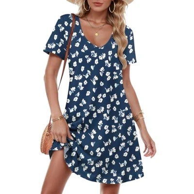 MATERIAL:Women's summer dress feature a skin-friendly, soft, and elastic fabric that is breathable, does not shrink, providing you with a delightful wearing experience. FEATURES:1.Loose Fit: Women dresses comfortable,suits different body types. 2.Two Pockets: Handy and trendy for a practical. 3.V-Neck:The v neck will highlights the neckline and adds sparkle to your look. 4.Short Sleeve:Summer dresses for women versatile and practical for any season MATCHING:Womens dresses easily take your look from the beach to brunch! Summer dress knee length dress is easy to style with leggings,boots and sunglasses to achieve a classic look. Occasions:This ladies dresses suit for Daily wear,Beach,Party,Wedding,Vacation,Home,Office,School,Shopping,Travel. DESIGN: Short Sleeve Dress, T Shirts Dress, Sundress, Summer Dress, V Neck Dress, Vocation Dress, Beach Dress, Dresses for Women UK, Casual Dress, Summer Dresses for Women, Midi Dresses
