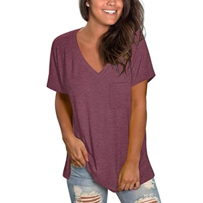 Soft Material: This cute shirts is made of quality 65% Polyester 30%Rayon and 5% Spandex, It is a lightweight, loose,stretchy,soft and comfortable fabric, It fits the body of most Lady’s shape Features: Short sleeve, V neck, solid color, loose casual style, The side pocket design adds special features to this womens blouse.This versatile V neck t shirt is for effortless styling your way!Is design for any bodyline,will be a good choice for you Match: This soft and comfortable short sleeve T-shirt is the best choice for this summer!Featuring a trendy color!It's perfect with all kinds of jeans, leggings or skirts,looks stylish and beautiful.We believe good clothing has the power to inspire confidence and beauty. A Must-Have Womens Tops in Your Wardrobe Occasion: Casual, everyday, Running, outdoor, travel, shopping, vacation, at party, dating, Work, or at home.The White Color and other Light Colors are a little bit see through, please use a nude or lighter color underwear,and don't have to wear a slip Garment Care: Recommend Hand-washing or Machine-washing with Cold Water or Warm Water Below 30°