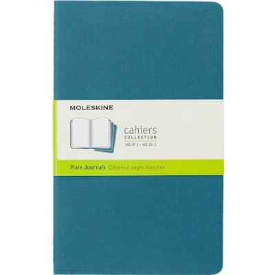 Moleskine Cahier Journal, Set 3 Notebooks with Plain Pages, Cardboard Cover Visible Cotton Stiching, Colour Brisk Blue, Large 13 x 21 cm, 80 Pages