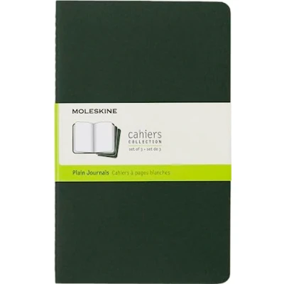 Moleskine Cahier Journal, Set 3 Notebooks with Plain Pages, Cardboard Cover Visible Cotton Stiching, Colour Myrtle Green, Large 13 x 21 cm, 80 Pages