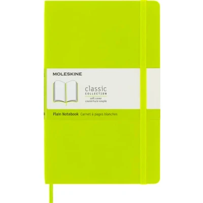 The classic and legendary Moleskine notebook is tinged once again with new colours and shading maintaining the iconicity and characteristics of the most loved notebook Classic design with elastic closure and a convenient bookmark to never lose your place. On the back, an expandable pocket to hold important notes and papers The notebook has 240 pages with plain layout and ivory-coloured 70 g/m² acid-free paper and the iconic "In case of loss" notice for your contact information in case you lose your notebook On the B-SIDE of the reusable band, additional instruments are printed. The Moleskine story is printed inside all our products. Opens totally at 180° The package contains a notebook with plain layout and soft cover, available in size Large 13 x 21 cm, 240 pages, lemon green