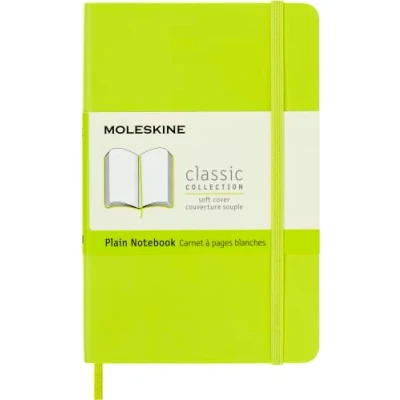 The classic and legendary Moleskine notebook is tinged once again with new colours and shading maintaining the iconicity and characteristics of the most loved notebook Classic design with elastic closure and a convenient bookmark to never lose your place. On the back, an expandable pocket to hold important notes and papers The notebook has 192 pages with plain layout and ivory-coloured 70 g/m² acid-free paper and the iconic "In case of loss" notice for your contact information in case you lose your notebook On the B-SIDE of the reusable band, additional instruments are printed. The Moleskine story is printed inside all our products. Opens totally at 180° The package contains a notebook with plain layout and soft cover, available in size Pocket 9 x 14 cm, 192 pages, lemon green