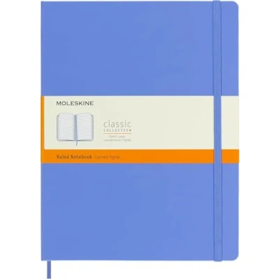 The classic and legendary Moleskine notebook is tinged once again with new colours and shading maintaining the iconicity and characteristics of the most loved notebook Classic design with elastic closure and a convenient bookmark to never lose your place. On the back, an expandable pocket to hold important notes and papers The notebook has 192 pages with ruled layout and ivory-coloured 70 g/m² acid-free paper and the iconic "In case of loss" notice for your contact information in case you lose your notebook On the B-SIDE of the reusable band, additional instruments are printed. The Moleskine story is printed inside all our products. Opens totally at 180° The package contains a notebook with ruled layout and hard cover, available in size X-Large 19 x 25 cm, 192 pages, hydrangea blue