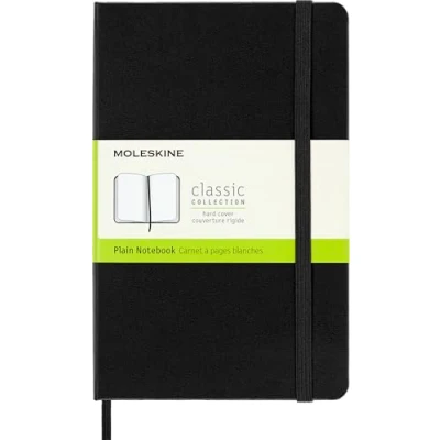 Moleskine Classic Plain Paper Notebook, Hard Cover and Elastic Closure Journal, Color Black, Size Medium 11.5 x 18 cm, 208 Pages