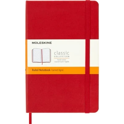 The classic and legendary Moleskine notebook is tinged once again with new colours and shading maintaining the iconicity and characteristics of the most loved notebook Classic design with elastic closure and a convenient bookmark to never lose your place. On the back, an expandable pocket to hold important notes and papers The notebook has 208 pages with ruled layout and ivory-coloured 70 g/m² acid-free paper and the iconic "In case of loss" notice for your contact information in case you lose your notebook On the B-SIDE of the reusable band, additional instruments are printed. The Moleskine story is printed inside all our products. Opens totally at 180° The package contains a notebook with ruled layout and hard cover, available in size medium 11.5 x 18 cm, 208 pages, scarlet red