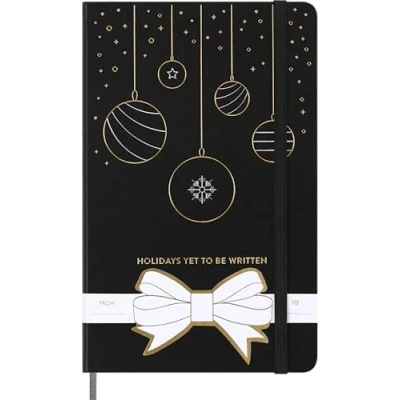 Moleskine Festive Notebook, Ruled Hard Cover and Elastic Closure, Ideal as Christmas Gift, Color Black, Large Format 13 x 21 cm